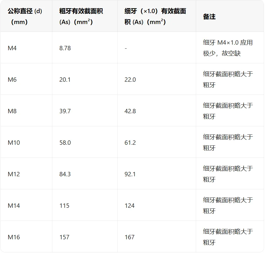 2. 有效截面积误用:粗牙 / 细牙不分